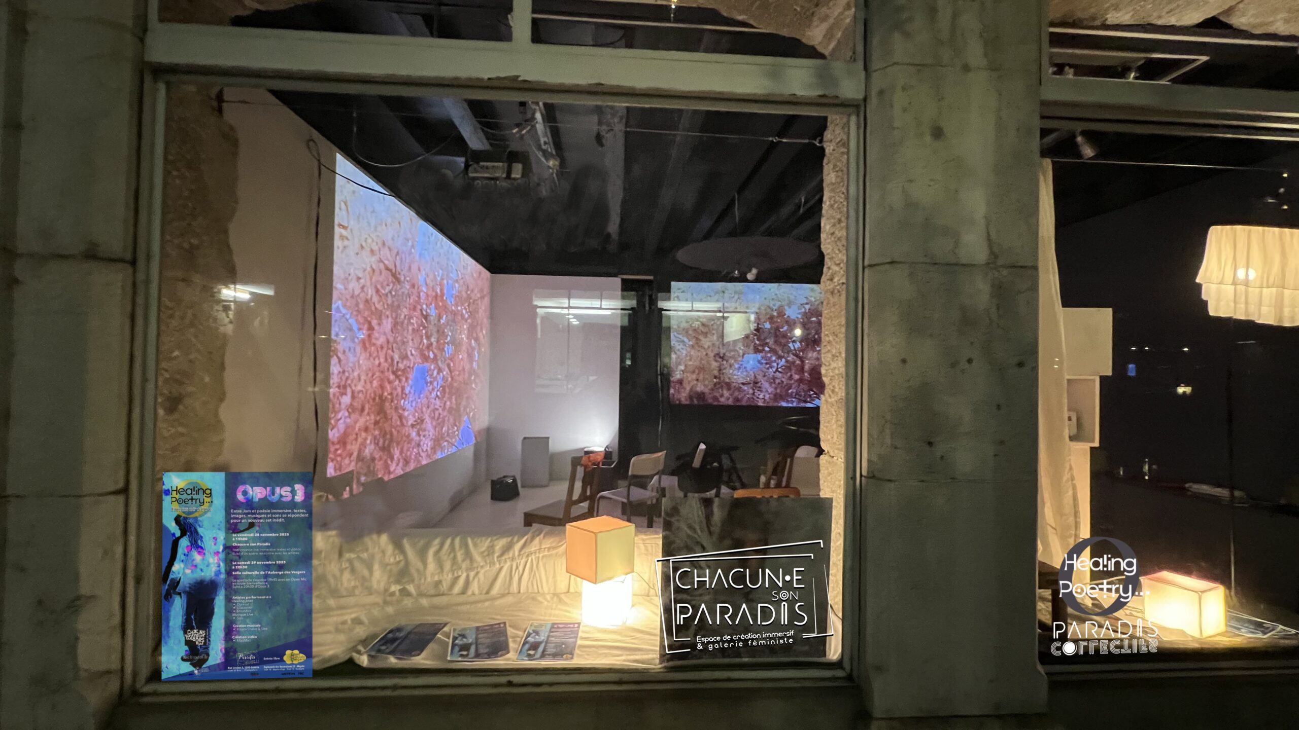 Chacun.e Son Paradis est un espace créatif immersif et une galerie féministe, qui héberge notamment le projet Healing Poetry.