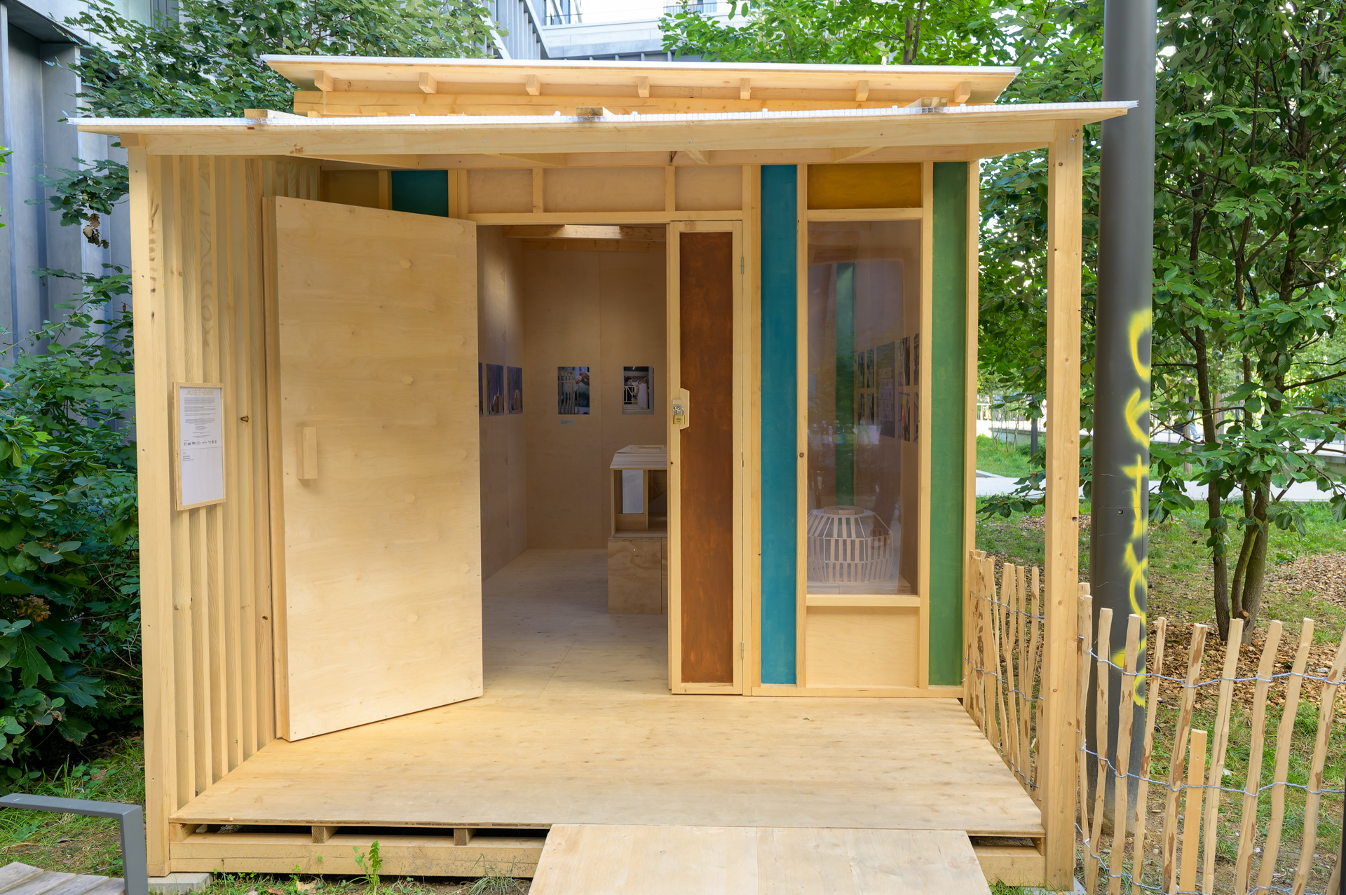 Après une série de workshops en 2023 et 2024, la maquette d’une jeune participante a été retenue comme base du pavillon. Un autre atelier a permis d’en développer une version à l’échelle 1/5e. La réalisation du pavillon et sa mise en couleur a été réalisée avec des enfants du quartier en août 2025.