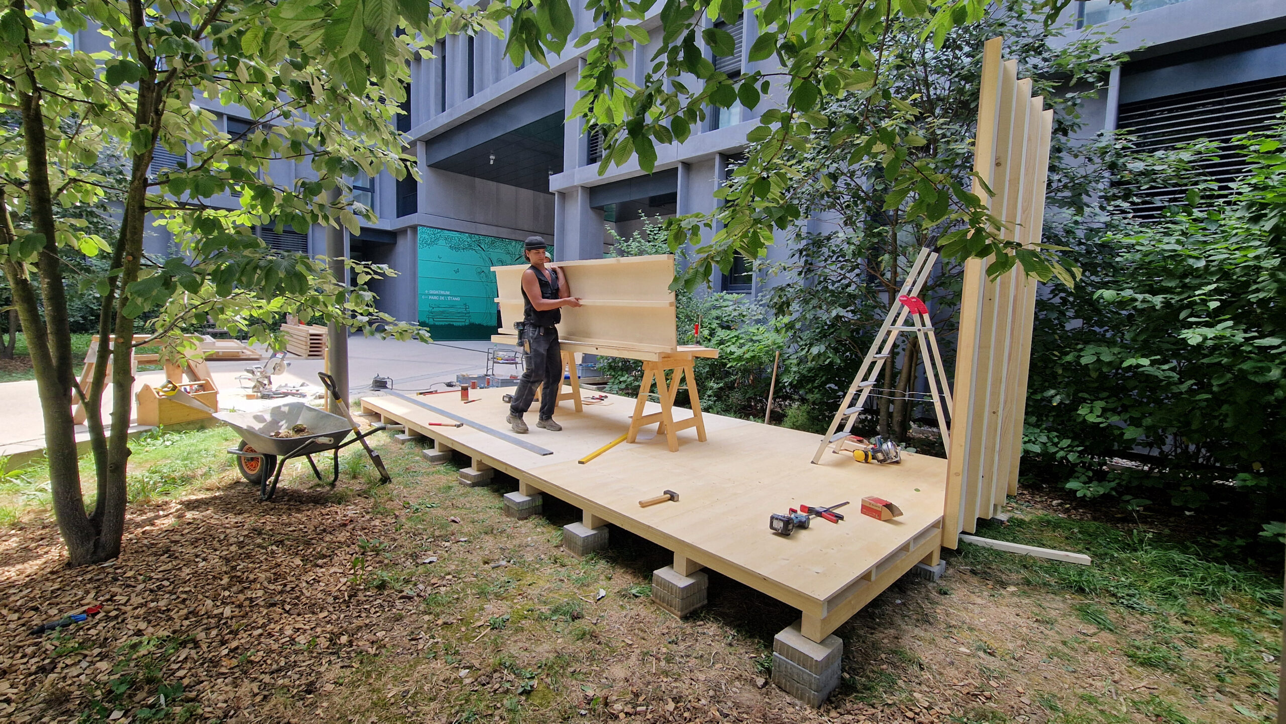 Le Musée Éphémère, projet participatif situé au quartier de l’Étang à Vernier, est un pavillon en bois conçu avec les habitant·e·s et dédié aux pratiques artistiques et aux événements culturels.